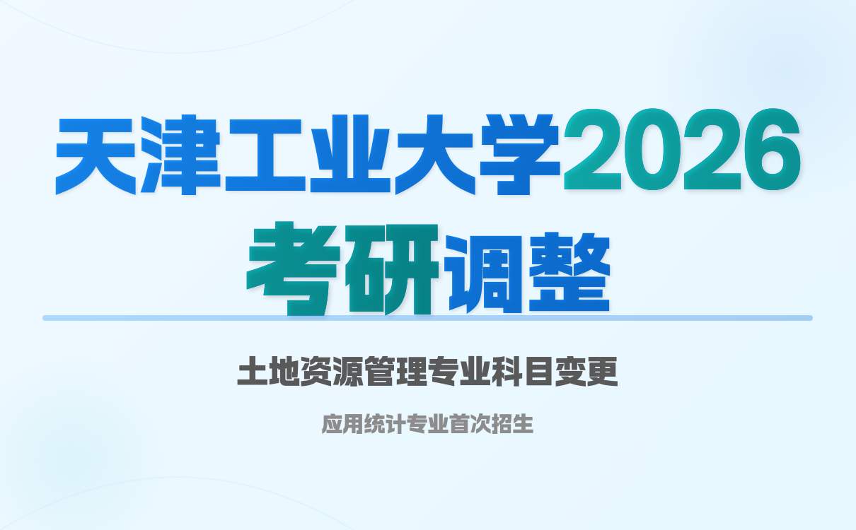 提醒:天津工业大学2026年硕士研究生招生考试部分专业初试科目有调整,环境科学与工程学院土地资源管理专业取消“土地管理学”,改为统一考“数学(三)”;数学科学学院新增应用统计专业,业务课二为自命题“统计学”。